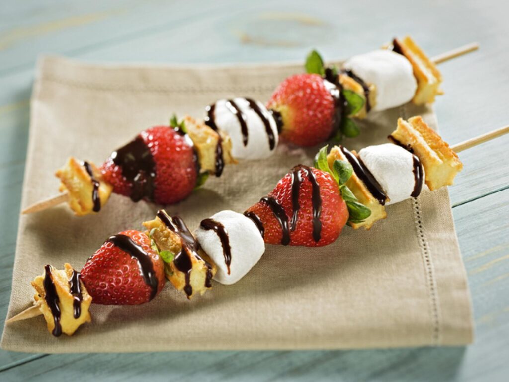 Estas pequeñas delicias no solo son visualmente atractivas, sino que también son muy prácticas. Puedes hacer brochetas en un abrir y cerrar de ojos y todas las edades las disfrutaran, desde el abuelito que siempre se cuela en la cocina hasta los peques que piensan que son superhéroes con sus palitos en mano.